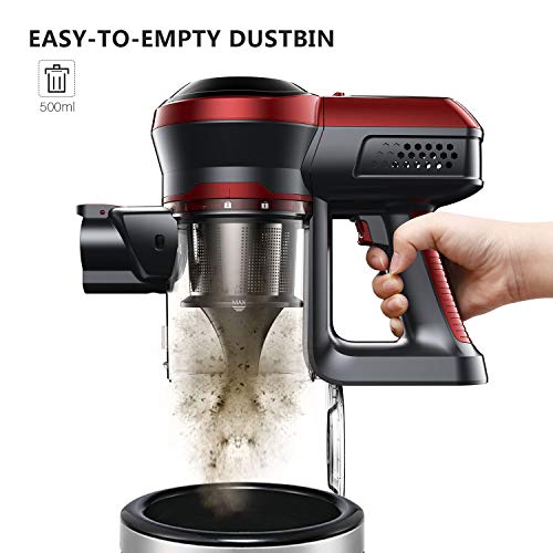EASY DISPOSAL OF WASTE: This 3.3lbs light weight and compact handheld stick vacuum cleaner removes collected wastes via the easy access 500ml large capacity detachable dustbin, perfect for heavy work from floor to ceiling. The charging base device is convenient to charge and storage
