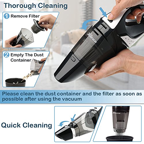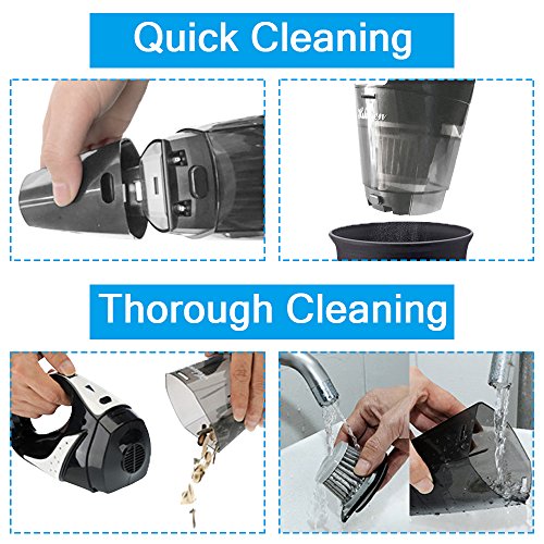 【POWERFUL CYCLONIC SUCTION】With 14.8V Lithium, 100w motor and radial cyclone Hikeren hand-held vacuum provides a stable 5000PA strong cyclonic suction, good for daily quick pick ups.