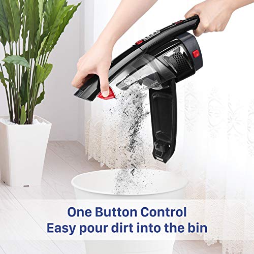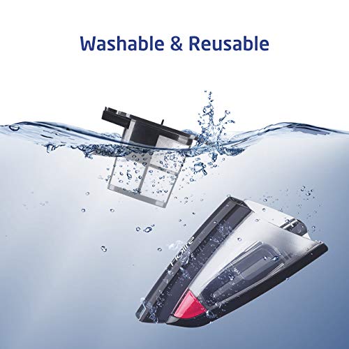 Super Easy to Clean: New Design of 2-Way Dumping & Cleaning, Pulling out dust cup, remove holder from the filter assembly, rinse them under water, and then put it in sunlight until thoroughly dried; The quick cleaning dust container way is a different design from the other vacuum cleaners, pressing EASY EMPTY BUTTON for a quick, mess-free empty.