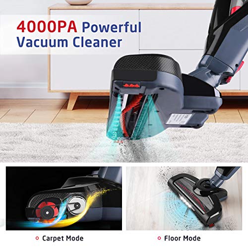 Powerful Suction: Two impressive 5Kpa (handheld MAX mode) and 4Kpa (stick MAX mode) powerful suction ensures a thorough cleaning without compromising on the maneuverability. Powerful suction offers excellent ability to pick up dust, hair, debris on the carpet, floor and sofa.