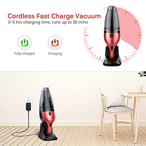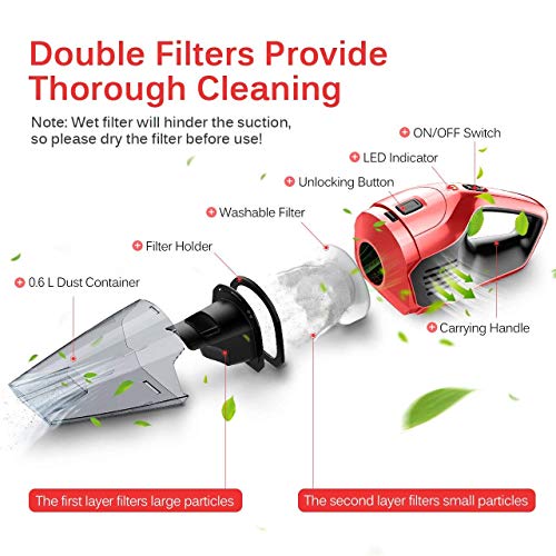 【WIDER CLEANING SCOPE】Equipped with 2200mAh li-ion batteries, 30-min long-lasting running time. 600ML large dust container meets a deep cleaning from the kitchen, the living room to the bedroom (about 150 ㎡). Now, it's widely known as the most useful handheld vacuum cleaner in vacuum market.