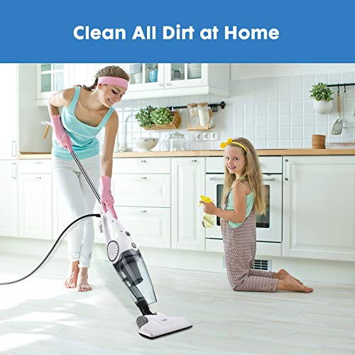 Ultra-Lightweight & Portable Weighing only at 3.7 pounds, easier than ever to clean up-and-down stairs or under furniture with its flexible swivel handle. The extended 12.8 Ft cord allows cleaning of an entire bedroom, living room or kitchen without worrying about battery life. Safe for Home & Office The cleaner featured high temperature, over voltage and super heat protection, which will automatically shut down and power off immediately when temp up to 110±5℃to keep cleaning safety. Quieter Operation Powerful motor always has some noise, but our ultra quiet cleaner only produces less than 80 dB noise when operating, it gives you a comfortable using atmosphere without disrupting the household. Superior Dust Container The vacuum comes with a removable 0.8L dust container, 25% larger than ordinary dust container capacity, easy to empty the contents and disassembled for cleaning tangled hairs, dust, etc. Specification Vacuum Dimensions: 45 X 12 X 11.5 cm (17.7 X 4.7 X 4.5 in)Adapter Input Voltage: 100V~50/60 Hz Rated Power: 600WUsage Type: Dry Vacuum:≥12KPANoise:≤80dBDust Capacity:≥0.8Cleaning Efficiency:≥96%Package Included1 X Stroller straps 1 X Extended Handle 1 X Handheld Vacuum 1 X Wire & Plug 1 X Dust Brush 1 X Crevice Tool 1 X Floor Brush 2 X HEPA Filters 1 X User ManualBacked by 45-day money-back and 12-month worry-free warranty