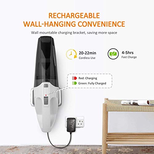 【Wall Mountable & Portable Design】: Homasy Vacuum adopt a wall hanging bracket, which can be installed on the wall for charge or storage. The charge connector is fixed firmly on the bracket, with the fixing system of the joint between appliance and charging base, creating perfect stability.