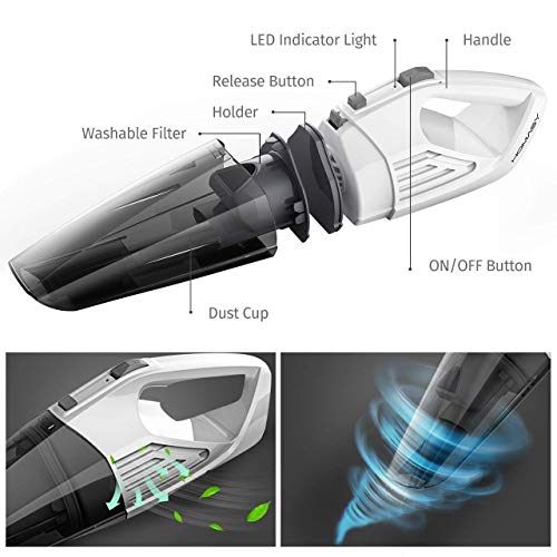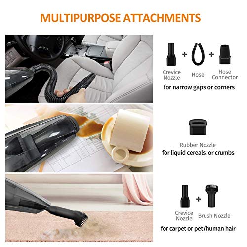 【All-round Cleaning, No Dead Angles】: With 3 different types of attachments, the portable cordless vacuum can help you thoroughly clean the dust buster, pet hair, liquid of every areas in Car & Kitchen. No more worry about liquid and dead corners!