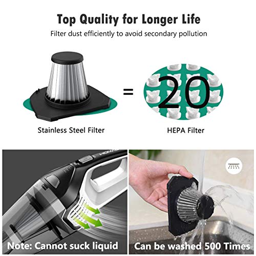 【Ultra-Long Service Life】The high-efficiency lithium battery adopted in Homasy vacuum cleaner can cycle up to 500 times with its lifetime up to 5 years, which is 3 times than that of other brands. The stainless steel filter can be washed and used 500 Times which is 20 times than that of other HEPA filter.