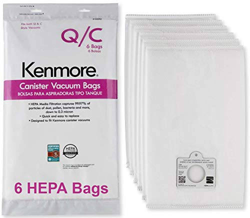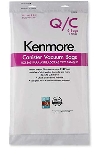 Kenmore HEPA Vacuum Bags C Q - Kenmore & Sears Style Q/C Bags for Canister Vacuum Cleaners. Also Fits Kenmore 5055, 50557, 50558. Part Number 20-53292. Package of 6 Premium HEPA Synthetic Bags.Premium HEPA Synthetic Bags, Type Q and C.