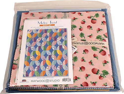 The Metro Twist quilt kit features fabric from the Berries & Blossoms collection by Kim's Cause Collection for Maywood Studio. The quilt kit includes the Metro Twist pattern (from Jenny Pedigo and Helen Robinson) and fabric for the quilt top and binding (backing fabric not included). Finished quilt size 40-inches by 55-inches.Metro Twist quilt kit for Berries & Blossoms collection from Maywood Studio