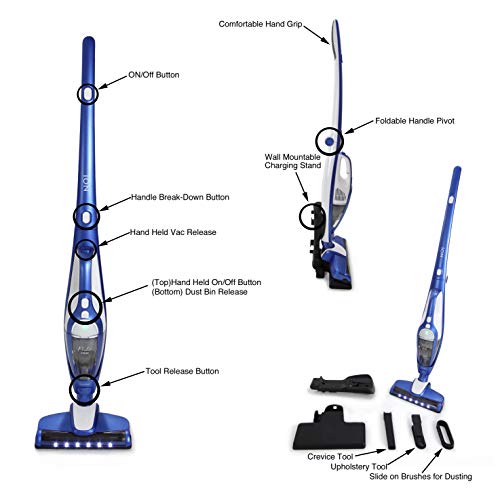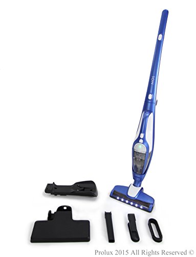The New Prolux Ion Bagless Battery Powered Stick Vac is the lightweight battery powered alternative for your cleaning needs! This highly compact, powerful, and easy to store vacuum frees you from the limitations of the standard corded vacuums. A bagless design also adds to the ease of cleaning your home. The multi surface Floor Nozzle (with electric brushroll which can be powered off) used in the upright setting to vacuum your hardwood floors, tile and carpet. Also the detachable handheld version is perfect for cleaning your vehicle and other hard to reach areas that other vacuums are just not capable of. This high end vacuum is designed with you in mind and has been built to last for many years to come without breaking the bank or your back! Lightweight - The Prolux Ion Stick Vac does not sacrifice mobility for power. Weighing a almost 6 pounds, this vacuum gives you the versatility that your other vacuums lack. Combined with the lightweight of this vacuum is a powerful DC 80 watt high air flow motor which will take care of your deep cleaning needs. Battery Powered - No more fumbling with those pesky cords! The powerful and long lasting 24V NI-MH 1500mah battery provides the Ion with up to 24 minutes cleaning power (even longer if just using the handheld unit) allowing you to move unrestrained through your home or vehicle. Variety - The Dual Mode allows you to use it for all your floor cleaning as well as handheld cleaning. Included the the Prolux Ion is the 3 in 1 accessory tool which tackles all of your dusting, upholstery, and crevice cleaning jobs with ease. Between the Multi-surface floor tool and 3 in 1 accessory tool, the Prolux Ion Stick Vac can easily clean almost any surface.The Prolux Ion is a high end cordless Stick Vacuum that is designed to do 1 thing.........Make Cleaning Easy! Its powerful 24 volt suction power lasts for 24 minutes per charge. It can turn into a handheld unit with 2 on board tools (crevice tool & Duster/Upholstery tool). With LED lights and electric spinning brush it can vacuum carpet, rugs, hardwood, tile and just about any surface.