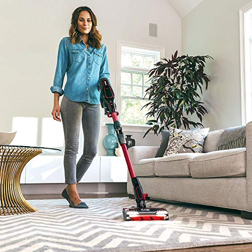 Kick those dust bunnies out from under your couch without straining your back or neck with Shark's IONFlex 2X DuoClean Cordless Vacuum. MultiFLEX technology allows this vacuum to fold over on itself, creating a sturdy free-standing vacuum that is easy to store. The flexible hose allows you to swivel and reach under tables, chairs, and sofas without bending, kneeling, or moving your furniture. This cordless, bagless vacuum weighs only 8.7 pounds, making it lightweight enough to lift high and clean those hard to reach areas. Give your back a break without easing up against dirt and dust with the IONFlex 2X DuoClean Cordless Vacuum by Shark.ION power pack; features a removable, rechargeable lithium-ion battery